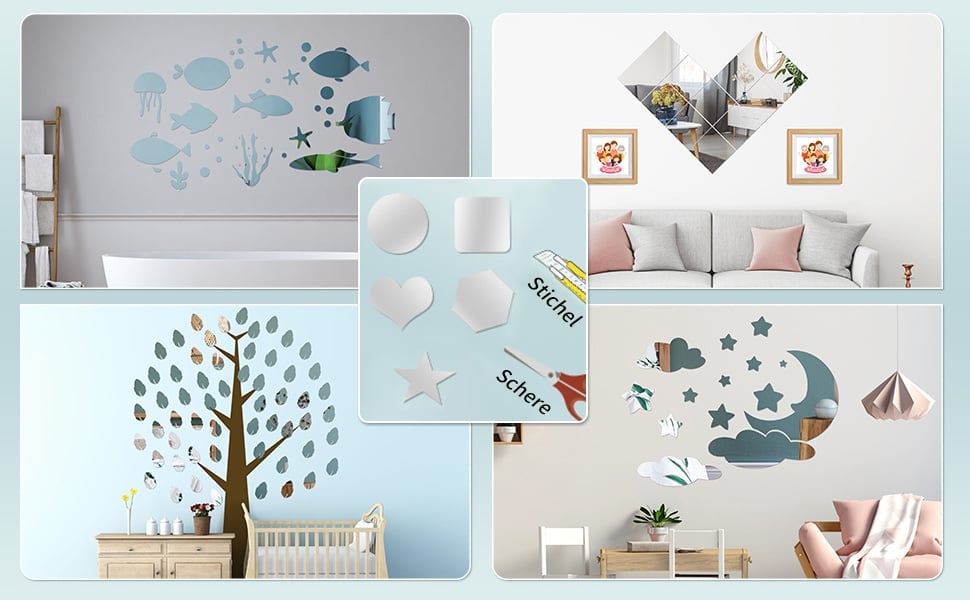 A wide range of applications: these ceramic tile mirror stickers can not only be used as TV background walls, rooms, doors, closets, bathrooms, bedrooms, sofas, children's rooms, ceilings, etc., but also can be used as glass mirrors in bedrooms, living rooms, etc. , Dressing room, kitchen, gym, office, etc.; please wipe the surface of the paste clean before use.
